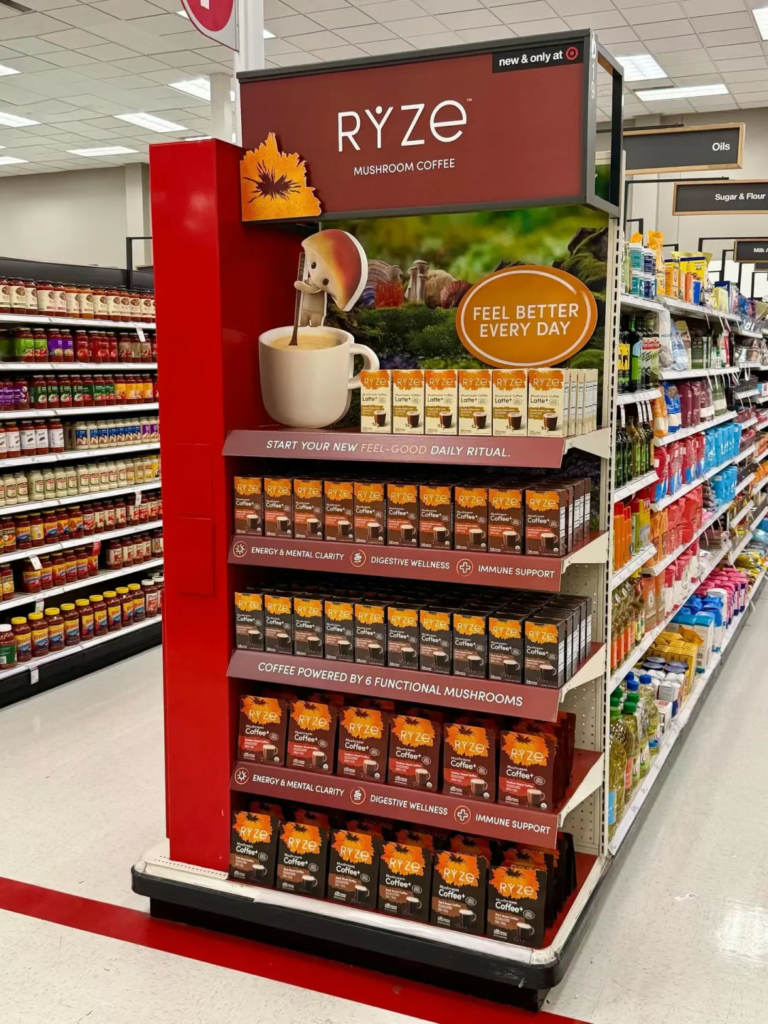 Claiming to offer health benefits such as immunity enhancement and digestion promotion, this market reached **$50 billion** in global retail sales last year and is projected to hit $62 billion by 2027. Hussein and Werner stated that choosing Target as their first offline retail partner will help Ryze “meet market demand on a large scale and bring functional coffee to a broader mainstream audience”.