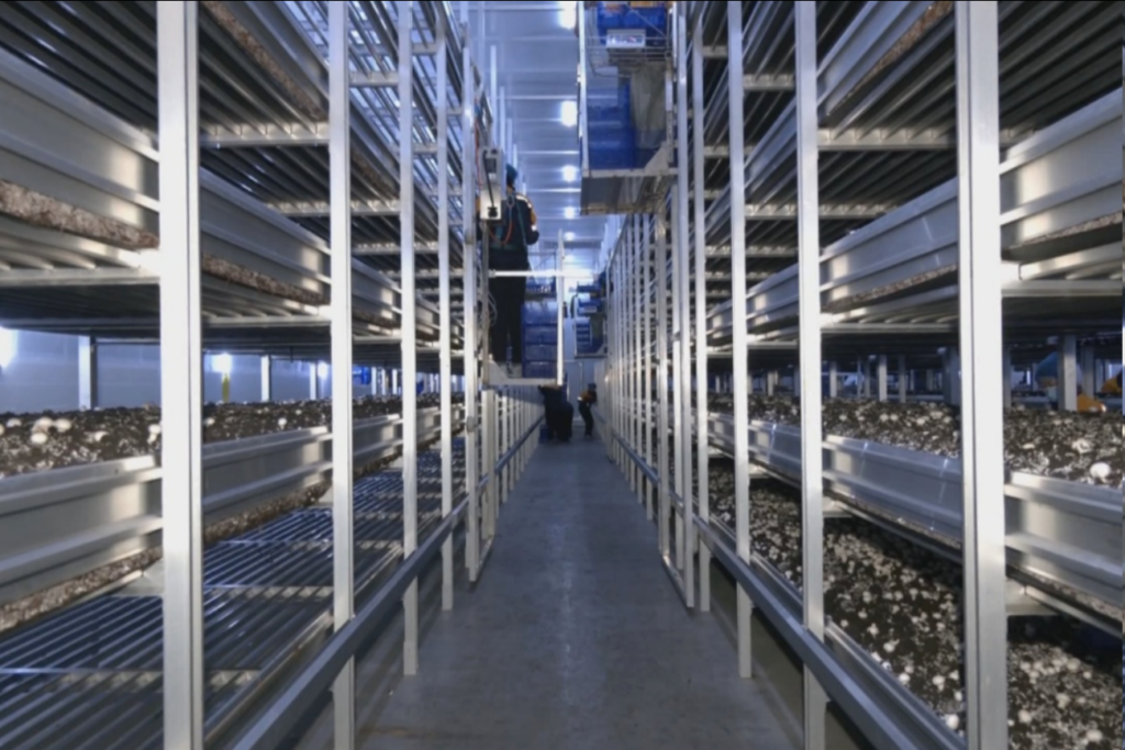 Rows of mushroom houses are neatly arranged in the constant temperature and humidity modern planting workshop